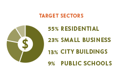 The Energy Campaign is focused on four key sectors: Municipal Buildings, K-12 Public Schools, Low and Moderate Income Residential Housing, and Small Business.